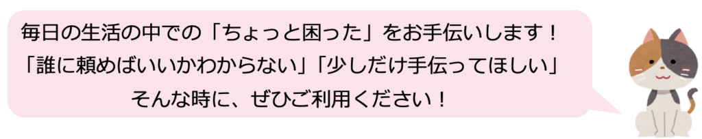| 付添い介助(事前予約要応談) 通院等 | ¥3,000〜 |
